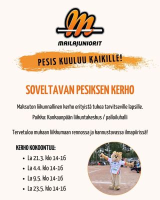 Mailajuniorit järjestää maksuttoman liikunnallisen kerhon erityistä tukea tarvitseville lapsille. Kerhossa tutustutaan pesäpallon alkeisiin soveltaen sekä liik…